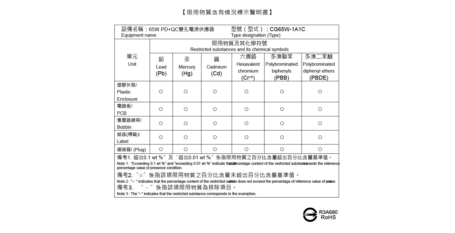 【Type-C】:5V=3A;9V=3A; 12V=3A ; 15V=3A ; 20V=3.25A(65W MAX)